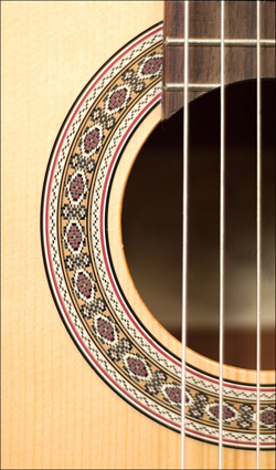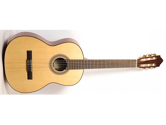 классическая гитара, верхняя дека – ель, низ и обечайка – махагони, гриф – бук, струны: нейлоновые