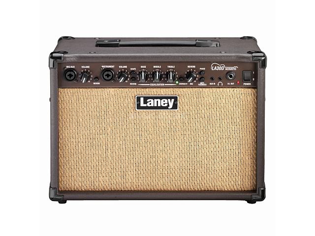 Laney LA30D - Комбоусилитель для акустической гитары, мощность 30 Вт RMS, динамики 2х6'', 2 канала, 3-х полосный эквалайзер, AUX вход, DI выход, хорус, ревербератор, кнопка Shape, выход на наушники.
