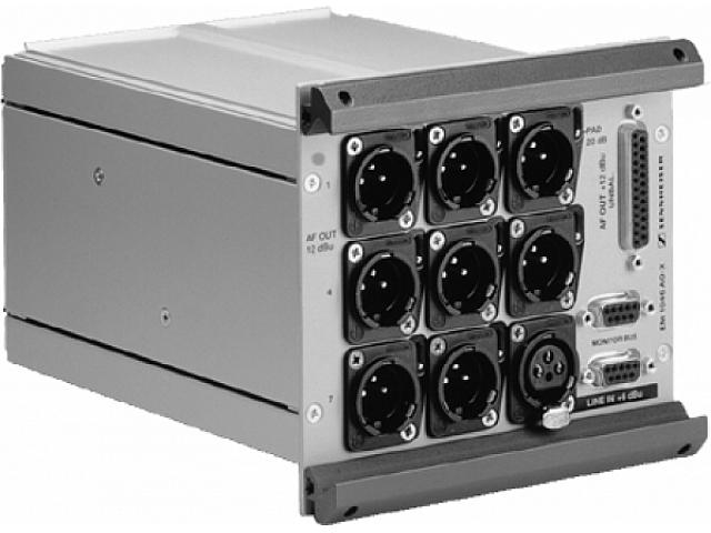 EM 1046 AOX модуль-аудио выхода. 8 x XLR-3F, балансные выхода. В системе с несколькими Main Frame, каждый канал может быть отдельно контролируемым при помощи Monitir Bus Link.
