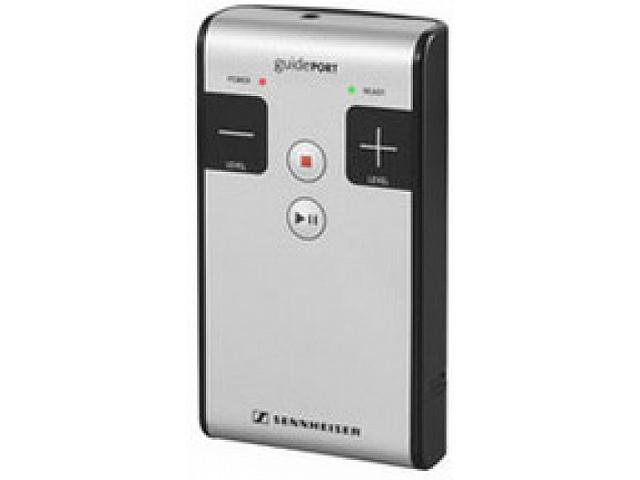 Персональный приёмник guidePORT. Четырёх кнопок вполне достаточно для того, чтобы управлять всеми основными функциями. Каждый посетитель может регулировать громкость, останавливать воспроизводимую информацию или повторно воспроизводить её, прослушивать более подробную информацию, выбирать язык (зависит от модификации приёмника).