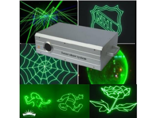 Источник :зеленый 500mw Лазер зеленного цвета с полной анимационной графикой 150 эффектов ,сканирующие гальванометры Режимы : компьютер ILDA(возможность компьютерного создания рисунков) Звуковая активация и DMX