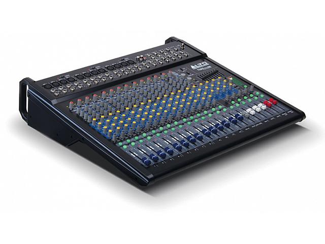 микшерный пульт силовой 2 x 750 Вт (4Ом), 2 x 500 Вт (8Ом), 12 мик/инстр. + 2 стереопары, фантом, 3-полосные эквалайзеры с параметрической серединой, 3 AUX + FX, 9-полосный графический мастер эквалайзер, 24бит DSP эффекты Alesis (16 x 16 программ), выход для наушников