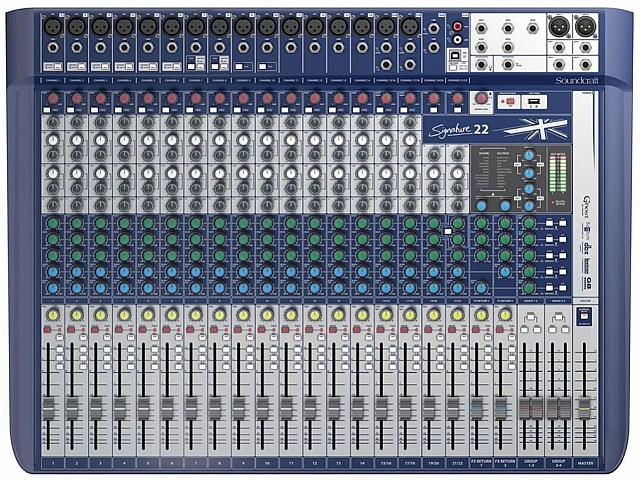 Signature 22, 16 микр (Ghost preamp), 3 стерео, 4-полос экв (Sapphyre Eq), 8 dbx лимитеры, 2 Lexicon процессоры, USB интерфейс (2вх / 2вих), 5 Ауксе, 4 подгруппы, 100мм фейдеры, GB аудиомаршрутизация, внутр. блок пит.