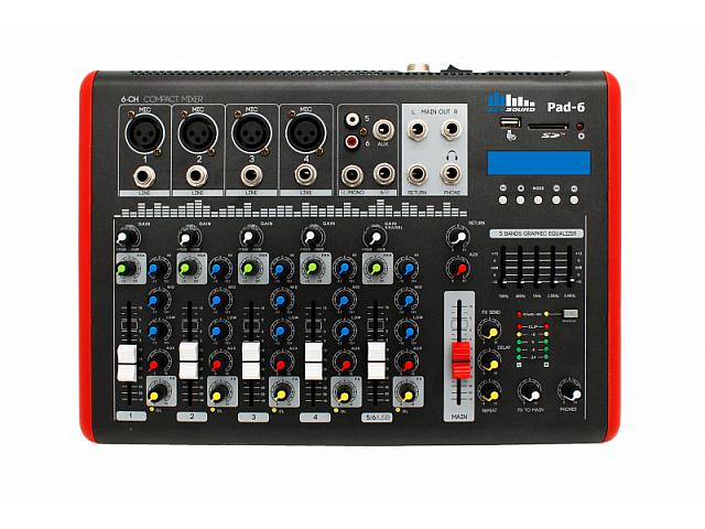 SKY SOUND PAD-6 - компактный 6-ти канальный микшерный пульт со встроенным MP3 проигрывателем.