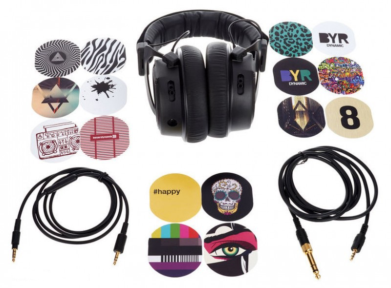 Студийные наушники закрытого типа, 16 Ом, 5 - 35 000 Гц, звуковое давление 96 Дб, максимальный SPL 116 дБ, допустимая мощность 100 мВт, шумоизоляция 18 дБ, односторонний кабель 2 м, конектор позолоченный миниджек с переходником на 1/4" джек, цвет черный. В комплекте аксессуарый набор из 16 декоративных пластин, два кабеля (1,5 м - прямой и 1,3 м прямой с микрофоном и кнопкой ответа).