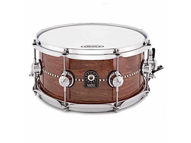 Малый барабан серии Tulipwood, 13"х6.5", материал - тюльпановое дерево с ореховой инкрустацией, фурнитура хром, глянцевый натуральный цвет.