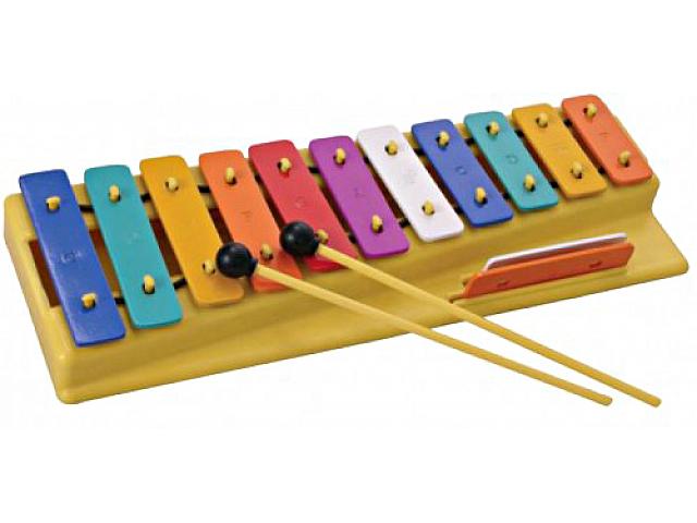 металлофон, 11 нот+ 2 дополнительные (F# и Bb), цветной + битер