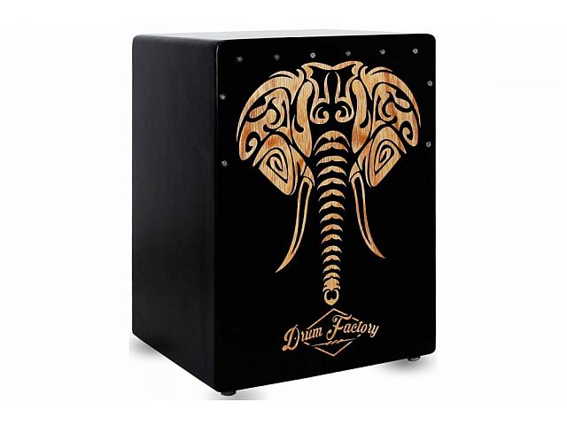 Кахон серии Regular, материал меранти, резиновые ножки, фиксированная пружина (8+8), запатентованный бас-порт, цвет черный с рисунком "слон", габариты 30х35х48.5 см.