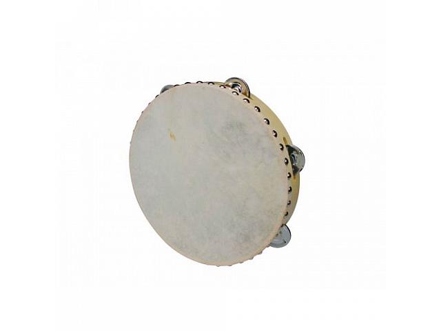 Тамбурин деревянный, покрыт недубленной кожей, 6 пар тарелочек, диаметр 9". Деревянный обод натурального цвета.