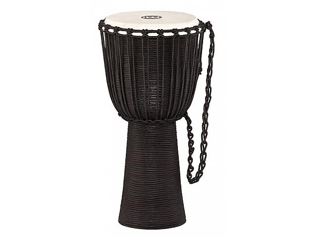 африканский джембе, диаметр 12", высота 24", материал - красное дерево, мембрана - кожа козла, шнур - HTP-нейлон (5 мм, 20 узелков), цвет черный