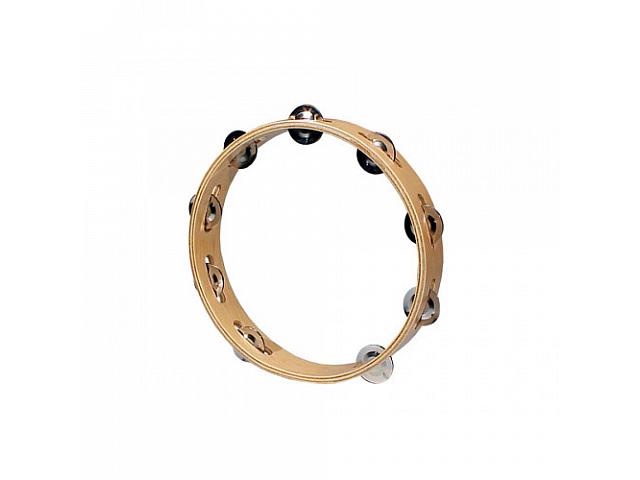 Тамбурин деревянный, без мембраны, 9 пар тарелочек, диаметр 10". Деревянный обод натурального цвета.