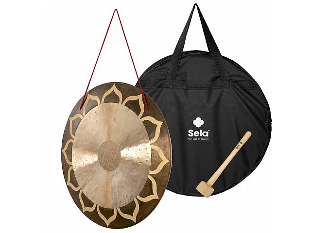 Гонг Sela Lotus 20 – настоящий шедевр изготовленный вручную в Китае из специального бронзового сплава. Он доступен в размере 20 дюймов, что дает глубокий и объемный звук при ударе. В комплект поставки входит молоток из клена с пластиковой головкой с бархатным чехлом и сумка для переноски на молнии.