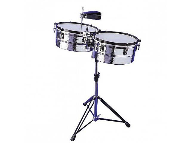 хромированные тимбалес 13"+14" со стойкой, чёрные обручи, каубэлл со стойкой, палочки