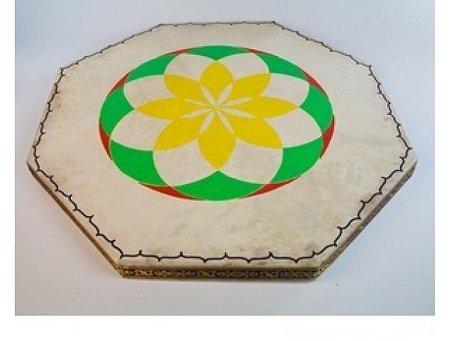 шаманский бубен Мандала, изготовлен в Тибете (Непал), 44 см, чэл 6-ти угольный, кожа, дерево 44х44х3 см