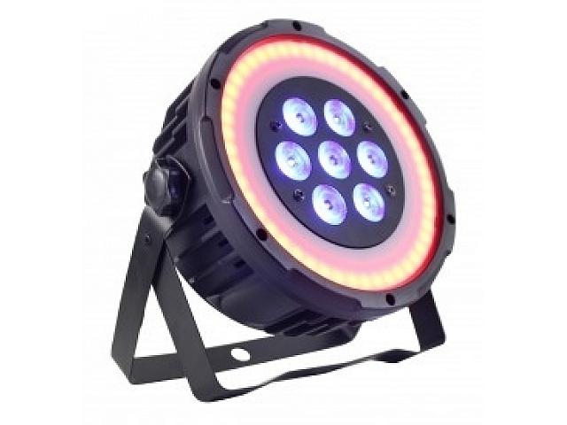 Светодиодный прожектор 7 светодиодов по 10 Вт 4-в-1 RGBW и кольцо из 48 SMD диодов RGBW. 8 каналов DMX