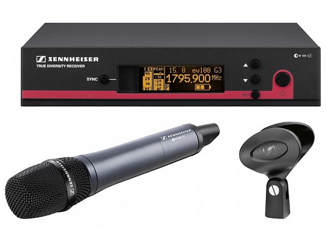 Универсальный комплект для озвучивания вокала и речи. Передатчик легко синхронизируется с приёмником через ИК-интерфейс простым нажатием кнопки. Приёмник с технологией True Diversity оборудован графическим дисплеем с задней подсветкой, информацию на котором легко прочитать при любом освещении.