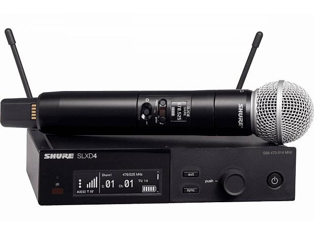 SHURE SLXD24E/SM58-H56 поставляется с одноканальным приёмником SLXD4 и ручным беспроводным передатчиком SLXD2 с капсюлем легендарного кардиоидного динамического микрофона SM58, антеннами, аксессуарами для монтажа в рэк и 2-мя батарейками типа АА.