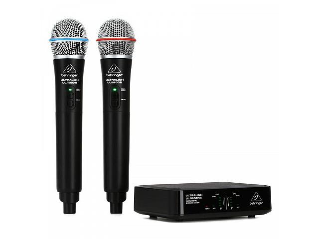 BEHRINGER ULM302MIC - цифровая радиосистема с двумя ручными микрофонами ULM300M и двухканальным приёмником ULM300RD, который имеет балансные XLR и небалансные 1/4" TS выходы.