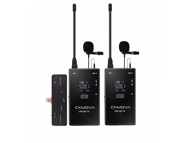 CKMOVA UM100 Kit6 – компактная цифровая беспроводная микрофонная система, которая обеспечивает высококачественный звук для пользователей практически в любом сценарии. Это простое решение для интервью и прямой трансляции в сочетании, например с зеркальной камерой, смартфоном или компьютером. UM100 Kit6 поставляется с двумя передатчиками (UM100 TX) и одним приемником (UM100 RXDI), совместимым с iPhone и другими девайсами с разъемом Lightning. Система имеет 20 каналов и автоматическое соединение для быстрой и простой работы. Передача данных производится беспроводным путем от передатчика к приемнику на расстоянии 50 м. Диапазон частот беспроводной сети составляет 470-510 МГц/550-590 МГц.