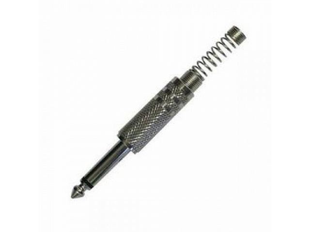 Разъем "джек" - моно 6,3 мм, металлический с пружиной, диаметр для кабеля 6 мм.