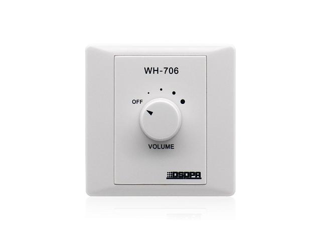 WH-706 — элегантный и компактный регулятор громкости с функцией блокировки напряжения 24В. Он совместим с настенными и потолочными динамиками DSPPA, которые имеют согласующие трансформаторы линии 100 В и могут быть подключены к динамику или группе динамиков с номинальной мощностью до 60 Вт. На панели имеется 5 положений выбора громкости. Это идеальный вариант для строительства отелей, офисных помещений, выставочных залов, гримерок и т. д.