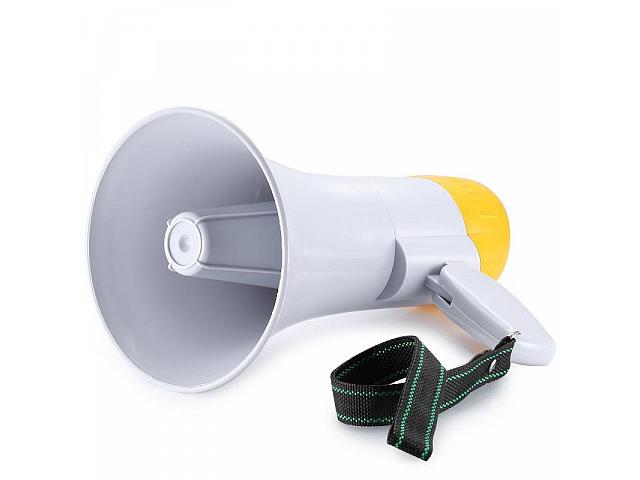 Мегафон SKY SOUND MG-2B (BATTERY) - ручной мегафон громкоговоритель с записью, встроенной сиреной. Укомплектован Li аккумулятором. Складная ручка обеспечивает компактность данной модели.