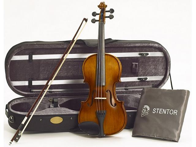 Stentor Graduate - превосходная ученическая скрипка для начинающих музыкантов. Инструмент изготовлен из цельных музыкальных пород древесины, в комплекте стильный прямоугольный кейс и деревянный смычок.