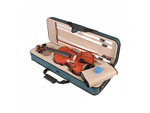 Скрипка с качественным еловым верхом и качественной спинкой, боками и шеей из пламенного клена. Лакировка сделанная нитролаком для высокой устойчивости к царапинам. Она оснащена колышками, накладкой на гриф, подбородком Teka и хвостовой частью из чёрного дерева.