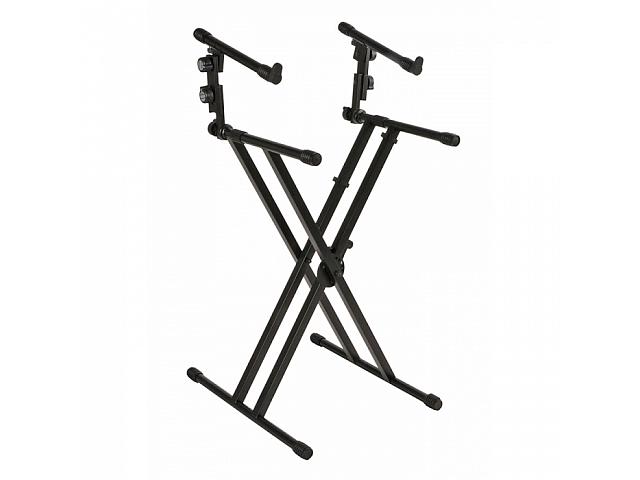 Стойка для двух клавишных инструментов, крестообразная, усиленная, двойная рама, нагрузка до 120 кг, нагрузка на второй ярус до 33.7 кг, цвет черный.