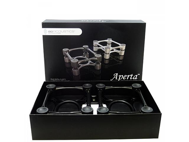 Пара алюминиевиевих стоек разработаны специально для высококлассных hi-fi-акустических систем среднего размера, студийных мониторов, больших напольных акустических систем. Размеры стоек Aperta 155x190x75 мм подойдут для акустических систем весом до 18 кг. Благодаря малогабаритности стоек, АС можно располагать максимально низко, при этом обеспечивается идеально чистый звук. Возможность регулировать наклон позволяет установить оборудование под оптимальным углом. Благодаря детальной градации угла (до 6,5 градуса) найти и зафиксировать идеальный угол очень легко. цвет черный