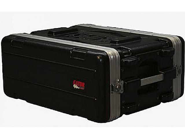 кейс для рекового оборудования на 4 единицы, глубина 14.25", пластиковый с оцинкованным стальным каркасом, рельсы крепления, 2 ручки, замки-защелки