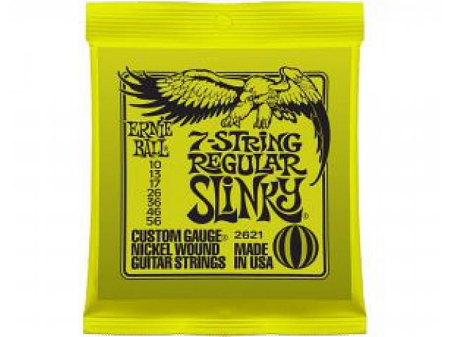 Струны для 7-струнной электрогитары Ernie Ball P02621; 10-13-17-26-36-46-56. Стальное 6-гранное основание с никелированной навивкой.