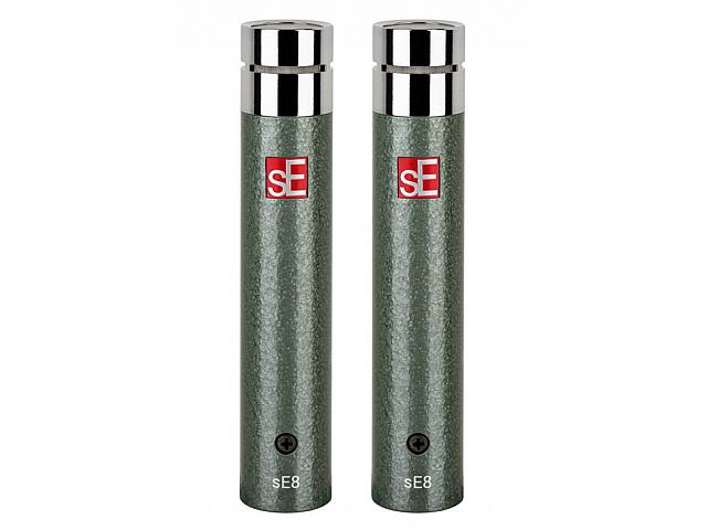 Подобранная пара в составе: двух микрофонов sE8, двух микрофонных держателей, двух ветрозащит, адаптера для установки и металлического кейса.