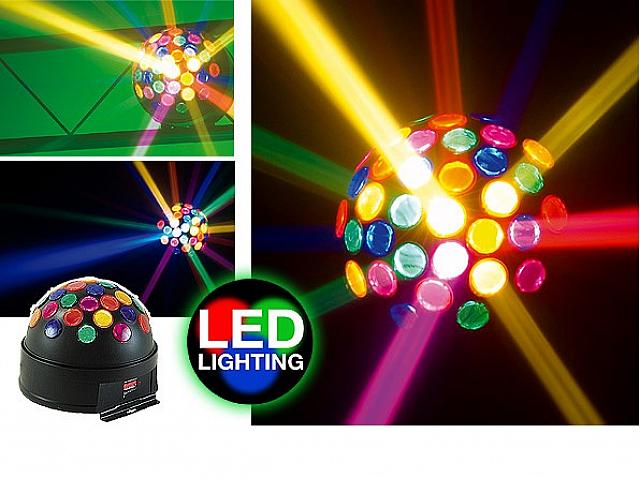 яркий светодиодный прибор, вариант эффекта Sunray, 34 излучающих цветных линзы, мощный светодиод 3Вт, широкая зона покрытия, мультивольтаж 100..240В