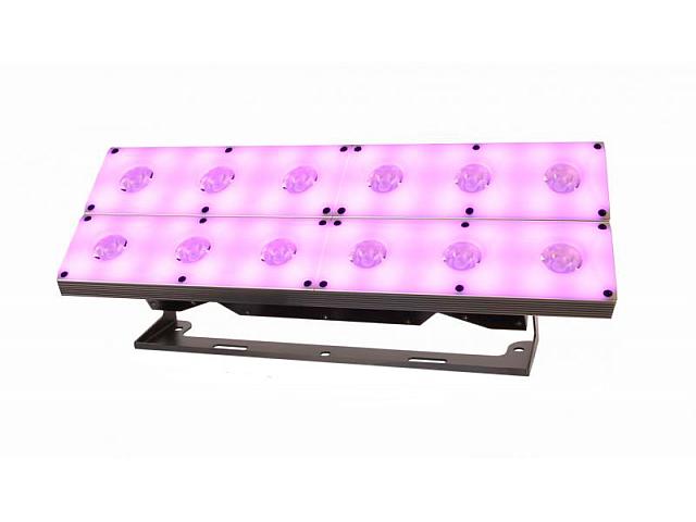 Светодиодная панель с эффектом лучей. 12 светодиодов CREE по 3 Вт + 48 светодиодов SMD по 0.5 Вт. Угол раскрытия лучей 4.5°. 4/5/7/15/17/19 каналов DMX. Размер 500х167х153 мм.