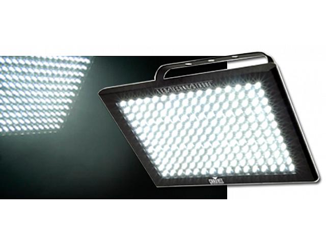 LED Technostrobe, светодиодная строб панель, 3-х канальный DMX-512, белый, 192 диода, звуковая активация, встроенные программы, сектор луча 20гр, 1321 люкс, крепление на стену, линк питания для доп. приборов