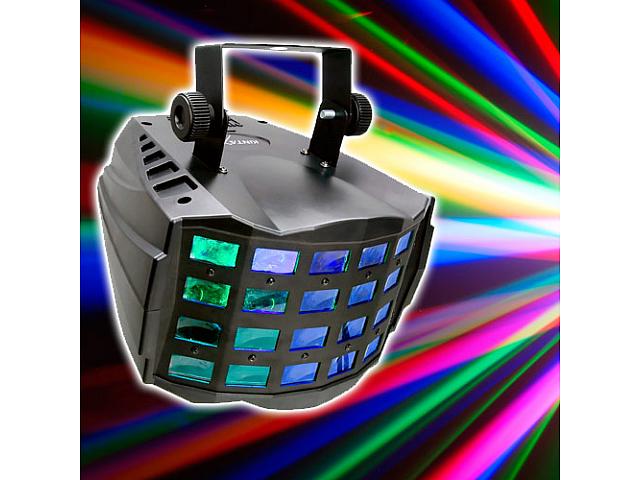 Kinta X - светодионый эффект дерби, 2-х канальный DMX-512, управление вращением мотора, RGB, 3 мощных диода (1 red, 1 green, 1 blue) , звуковая активация, встроенные программы, сектор луча 135 гр, линк питания