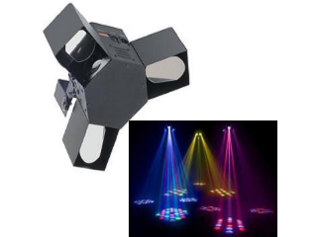 Источник: 72 светодиодов 5мм RGB - вариантов цветов Ресурс светодиодов - 10000часов Гобо - вариационное множество световых лучей изменяющих конфигурацию и движущихся в пространстве