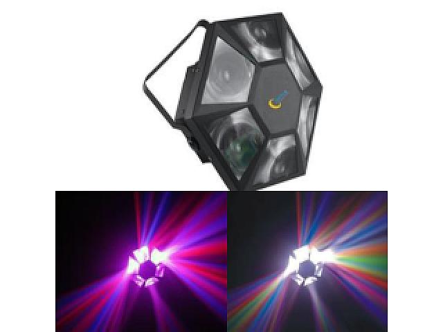 Источник: 240 светодиодов 5мм RGB - вариантов цветов Ресурс светодиодов - 10000часов Звуковая активация и DMX 6-ти линзовая полусфера преломляет матричный светодиодный рисунок изменяя рисунки и цвета . Вращение Мотор: DC12V45rpm