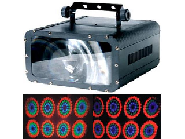 Источник: 360светодиодов 5мм RGB - 256 вариантов цветов Ресурс светодиодов - 10000часов Восемь светодиотных матриц создают гобо - вариационное множество Световых лучей изменяющих конфигурацию, цвета и рисунки Стробо эффект Звуковая активация и DMX -9 каналов