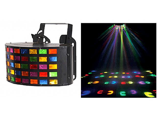KINTA, 2-х канальный DMX-512 эффект «derby», DMX управление: выключение, скорость вращения, пре-программы, звуковая активация, стробирование, 40 линз, 80 вращающихся лучей, встроенные программы активации звуком, автономная работа при отсутствии DMX сигнала, режимы Master/Slave, контроллер выключения в комплекте, принудительное охлаждение, лампа 2 x 64514 120V 300W