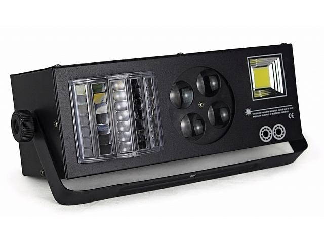 комбинирующий лазер, дерби, строб и паттерн в одном корпусе. Лазер генерирует тысячи красных и зеленых точек. Раздельный контроль цвета и программ. 9 каналов DMX.