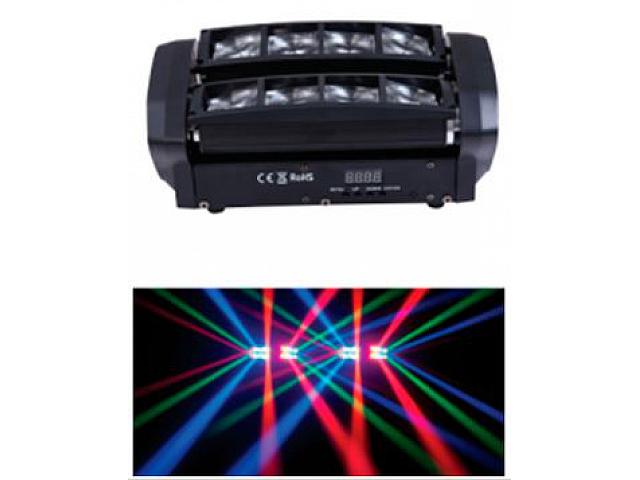 Эффект паука с 8 лучами. 8 светодиодов 2 красных, 2 зеленых, 2 синих, 2 белых. DMX, звуковая активация, авто-режим.