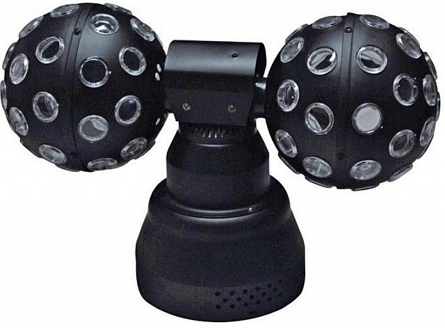 Светодиодный световой эффект два вращающихся шара. Технические характеристики: 2х9Вт RGB светодиоды. Напряжение питания 230В, 50-60Гц. Максимальная потребляемая мощность 25 Вт. Габариты 490x240x340мм. Вес 4кг.