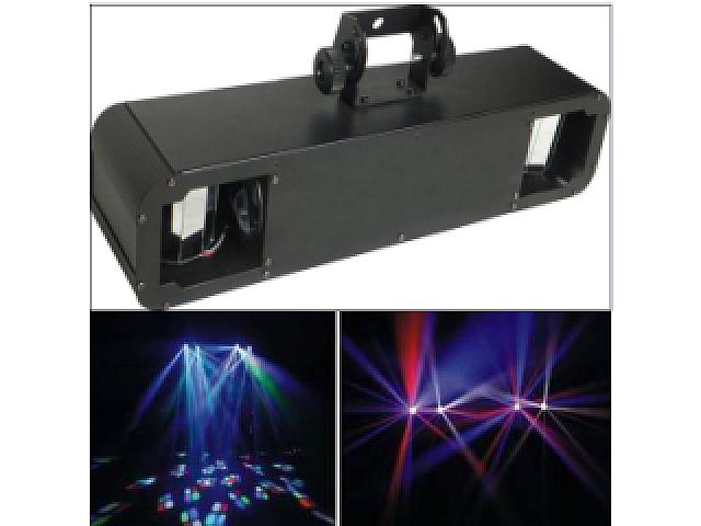 Сдвоенный сведотиодный прибор С двумя отражающими вращающимися барабанами Создающих имитацию трасирующих лучей Источник: 2* 12W(4в1) светодиод Мультицветный светодиод в одном светодиоде 4 цвета Звуковая активация,авто и DMX
