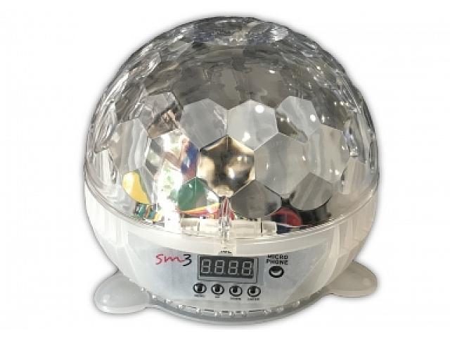"Светодиодный диско шар STLS SM3 48 шт * 10мм светодиоды высокой яркости RGB светодиоды 6 * 3W RGBWAP 6 цветов: Красный, Зеленый, Синий, Белый, Оранжевый, Розовый Авто, Звук-активировация Мощность: 20W Размеры: 181x181x154 мм Вес: 0,61 кг"