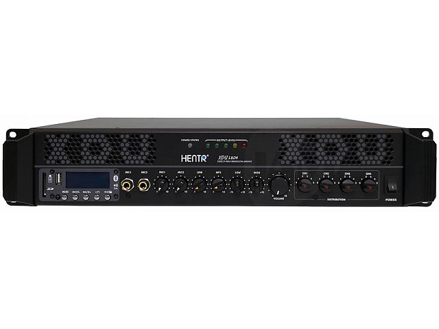 Усилитель XDU1804 оснащен двумя микрофонными входами (вход MIC1 имеет приоритет), линейным стереовходом, 2-полосным эквалайзером, а также имеет 4 выходные группы с независимой регулировкой громкости. А наличие линейного выхода позволяет объединить в единую цепочку несколько усилителей, для максимально удобной и гибкой инсталляции.