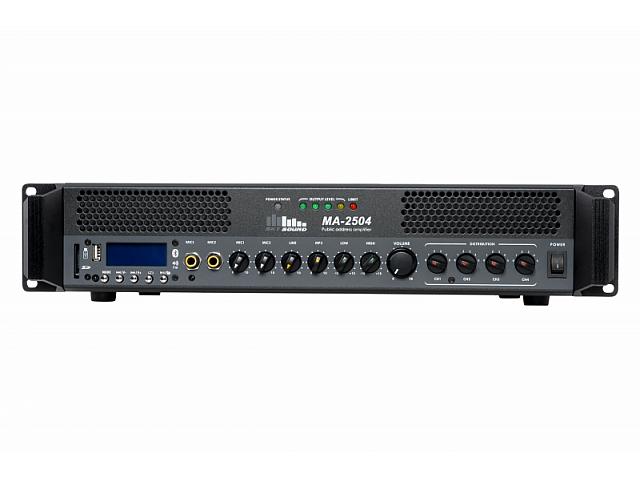 Усилители мощности серии MA яляются идеальным сочетанием качества и доступности в сфере озвучивания систем трансляции фонового и речевого оповещения. Передняя панель и ручки усилителя выполненные из алюминиевого сплава, большой LCD экран, хромированые кнопки, эргономичный дизайн придают устройству очень деликатный и интуитивно понятный внешний вид. Благодаря запатентованной технологии защиты линии трансляции звука усилители серии MA подходят для работы в сетях дальнего радиовещания с использованием трансляционных акустическим систем различной мощности.