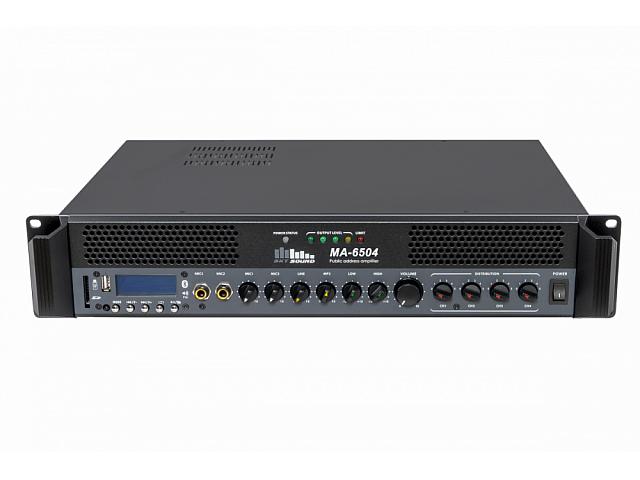 Усилители мощности серии MA яляются идеальным сочетанием качества и доступности в сфере озвучивания систем трансляции фонового и речевого оповещения. Передняя панель и ручки усилителя выполненные из алюминиевого сплава, большой LCD экран, хромированые кнопки, эргономичный дизайн придают устройству очень деликатный и интуитивно понятный внешний вид. Благодаря запатентованной технологии защиты линии трансляции звука усилители серии MA подходят для работы в сетях дальнего радиовещания с использованием трансляционных акустическим систем различной мощности.
