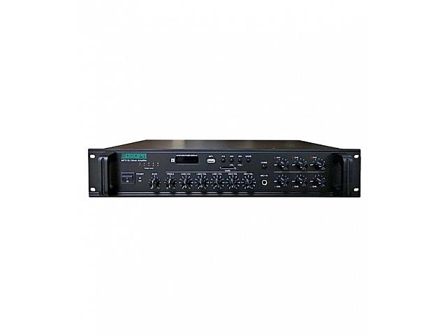 Этот микшерный усилитель рассчитан на мощность 120Вт. Предусмотрен выход динамика 100В и 4–16Ом. Имеется 4 небалансных микрофонных входа и 3 дополнительных входа. Предусмотрены регуляторы низких и высоких частот. Этот усилитель можно применять в различных случаях, например, в супермаркете, классе и т. д. Обеспечивается широкая защита от короткого замыкания, перегрузки и высокой температуры. Автоматическая система охлаждения обеспечивает чрезвычайно тихую систему. Этот усилитель можно назвать 6-зонным усилителем или 6-зонным аудиоусилителем.